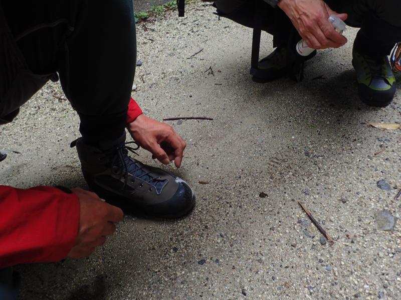 自分は慣れていないので、なんでもない場所でよく滑ってこけたり、岩を登る際にも膝やすねをぶつけるため、スパッツは必須でした。