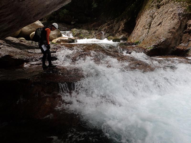 二日間のうち、一日目は机上にて装備や遡行図を確認し、天気の様子を見ながら場所の選定を行いました。