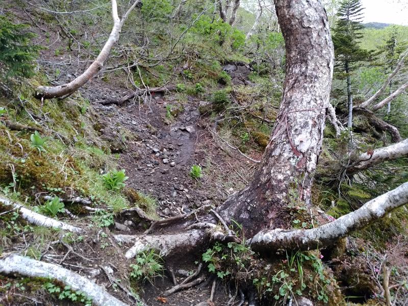 この日稜線であった方によると横岳の分岐から赤岳側のほうが例年早くに咲き始めるようで、今年は早い株は5月GWの辺りに確認されていたとのこと。今回は時間がなかったので少しでも可能性のある横岳方面へ行きカニの横這いのあたりでやっと数株を確認できました。反対の日の岳方面はもうほぼ終わっていたそうです。これからはウルップ草が始まります。