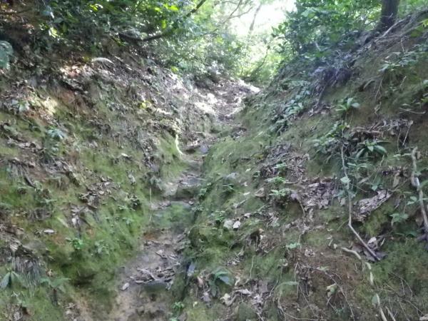 - 苔むした急坂が続きます。けっこう手を使いますからグローブは必須。下りはよく滑るので、ずっとふんばり通しで筋肉パンパンでした。