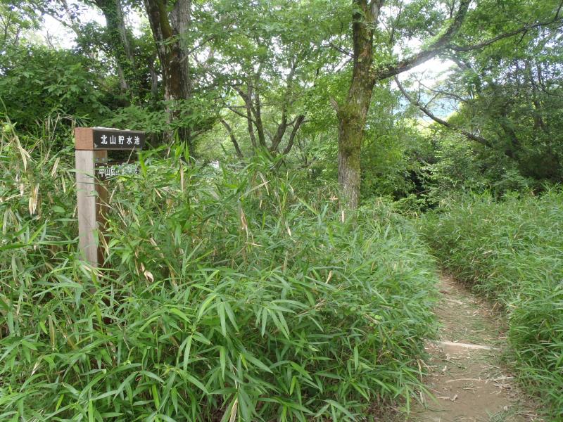 下りは北山貯水池へと少し急な坂道ですが道はしっかりとしてます。