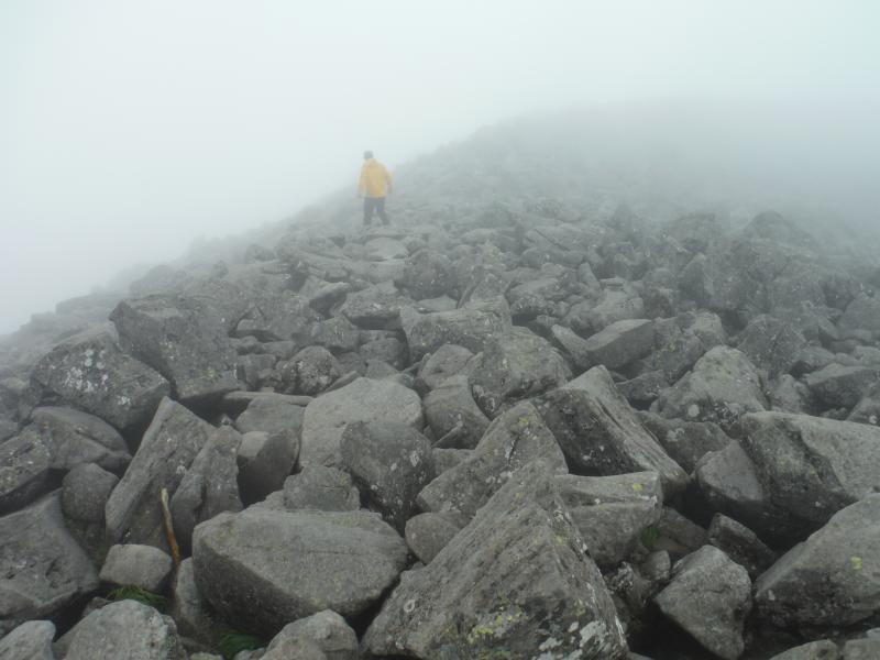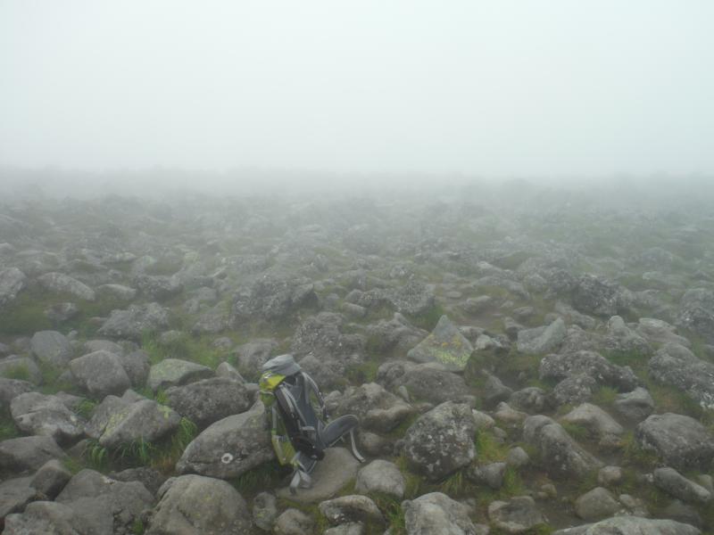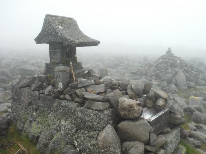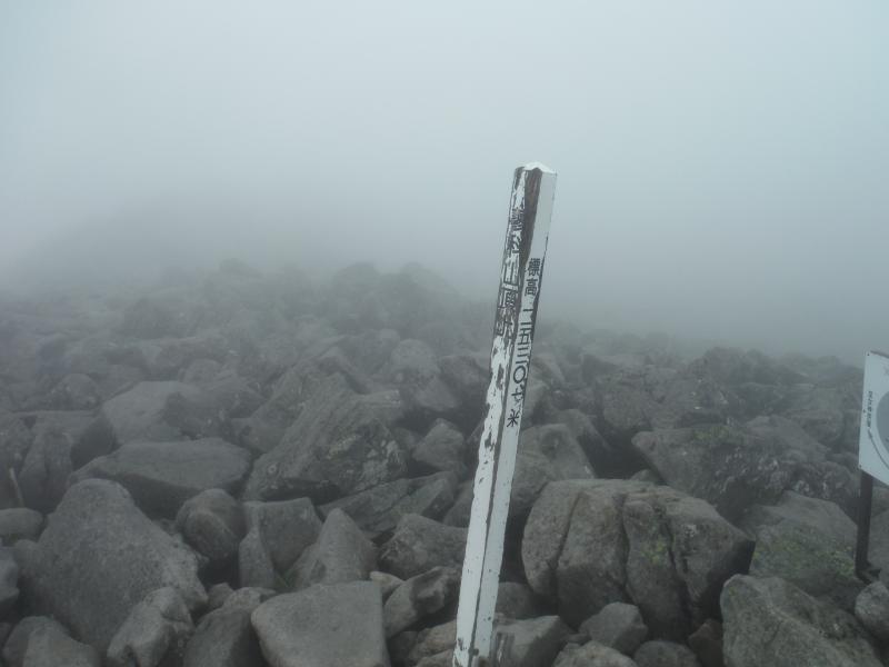 山頂は登る予定ではなかったのですが、濃い霧のなか楽しそうに降りてくる登山者3人組に会い、まだ時間があったので行ってきました。