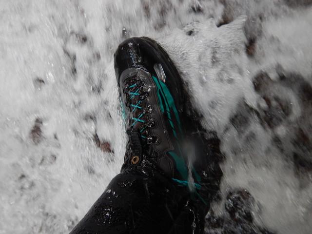 定番の大峰からモデルチェンジしたKR1。大峰は柔らかいアッパーでフィット感が高い反面、ハードに使うと3シーズンほどでアッパーがほつれてきましたが、KR1はアッパーの縫製箇所をプリントで補強し耐久性が大幅にアップデート。アッパーの下部全体を覆っているラバーも固いつくりになり耐久性が上がっています。KR1は大峰のフィット感の高さを受け継いでおりクライミングシーンの多い沢にお勧めのモデルです。