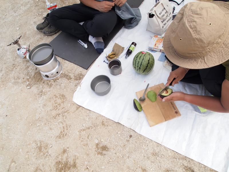 今回のプランは砂浜のような山頂でホットサンドを作ったり、スイカ割ったりとことん楽しもうという企画。車で向かう道中も常に笑いが絶えないほど賑やかで楽しい。終始トークが尽きないので少々疲れるが大好きな仲間。そんな仲間と山で川で過ごした1日はとてつもない充実感でいっぱいでした。
