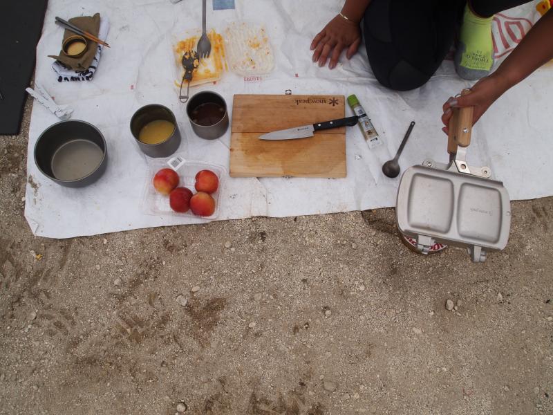 個人的には2回目の日向山、今回は出発も遅かったので矢立石まで車で行き山頂を目指すハイキングコースへ。緩やかに高度を上げつつ登り詰めたその先には、山頂とは思えないほど白いビーチへ様変わり。早速タープを張って少しまったりした所で、クッキングスタート!!が思わぬアクシデントが発生。ホットサンドに入れる一部の具材を車の中へ忘れてしまいました…メインの甲州牛まで(笑)