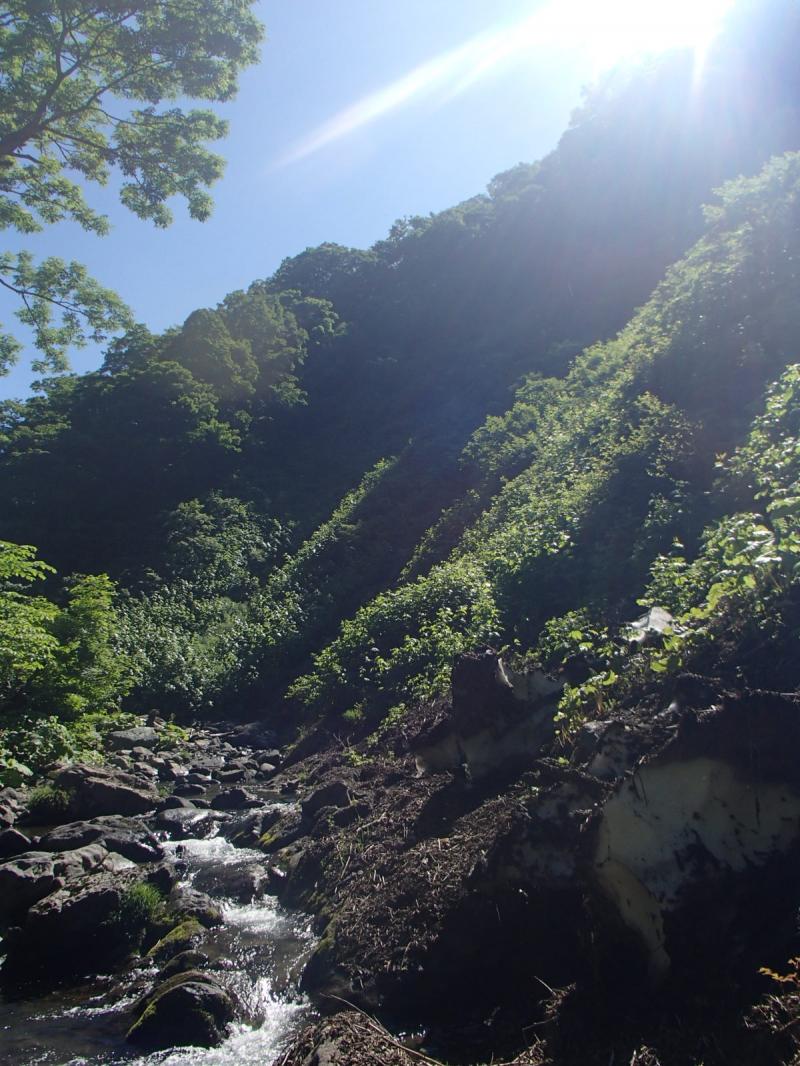 ようやく北海道も沢シーズンとなりました。天気にも恵まれ絶好の沢日和の中、積丹のマイナー沢古宇川大川を遡下降してきました。沢自体は大きな滝もなく、初心者でも簡単に行けるような沢でしたが所々釜のある小滝やナメ滝が出てきて全て直登で気持ちよく沢と戯れることができました。稜線から頂上までそして頂上から沢筋に戻る下降まではたっぷりと藪こぎも味わうことができました。それにしてもなぜ積丹の藪はあんなに強烈なのか。