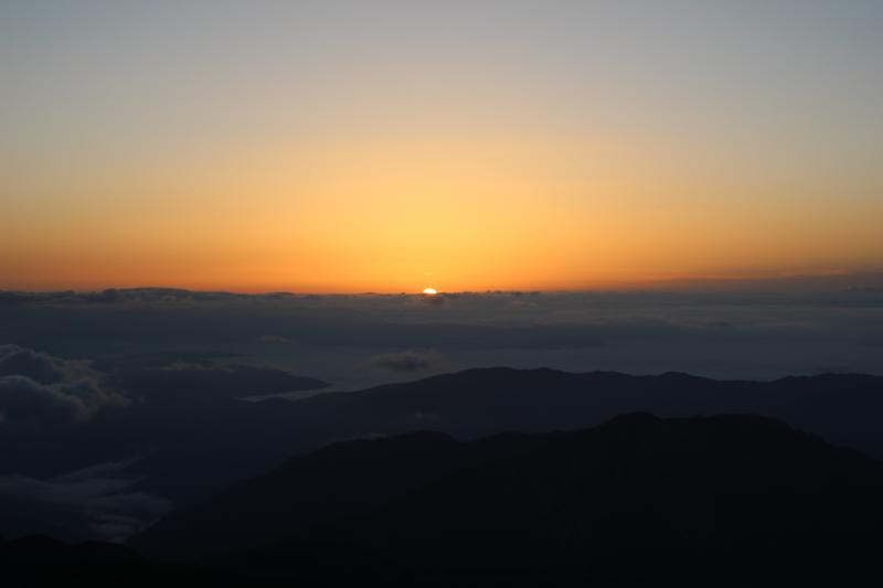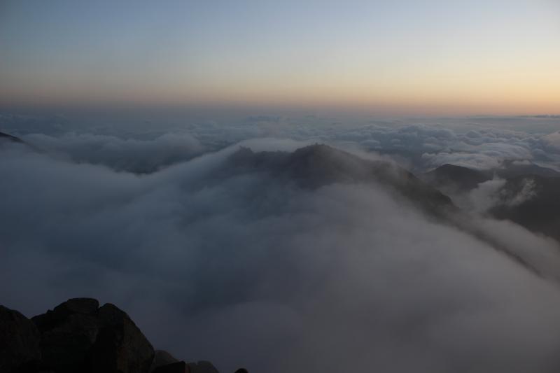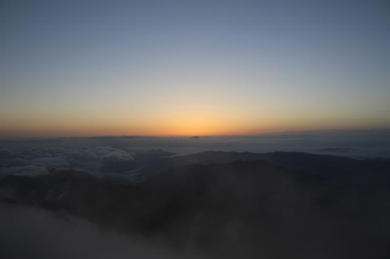 御来光が見えるか微妙は雰囲気のまま山頂へ。