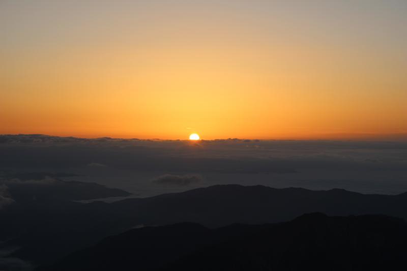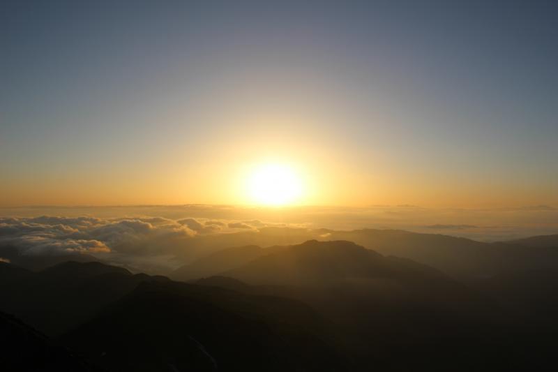 それまでガスで真っ白だったのに御来光の直前でガスが晴れて喜びも倍増。