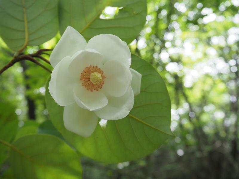 スキー場のゲレンデをあがり少しぬかるんだ散策路を歩くとあった!嫁が切望したオオヤマレンゲが咲いていた!本当だ。確かに森の貴婦人だ(か?)