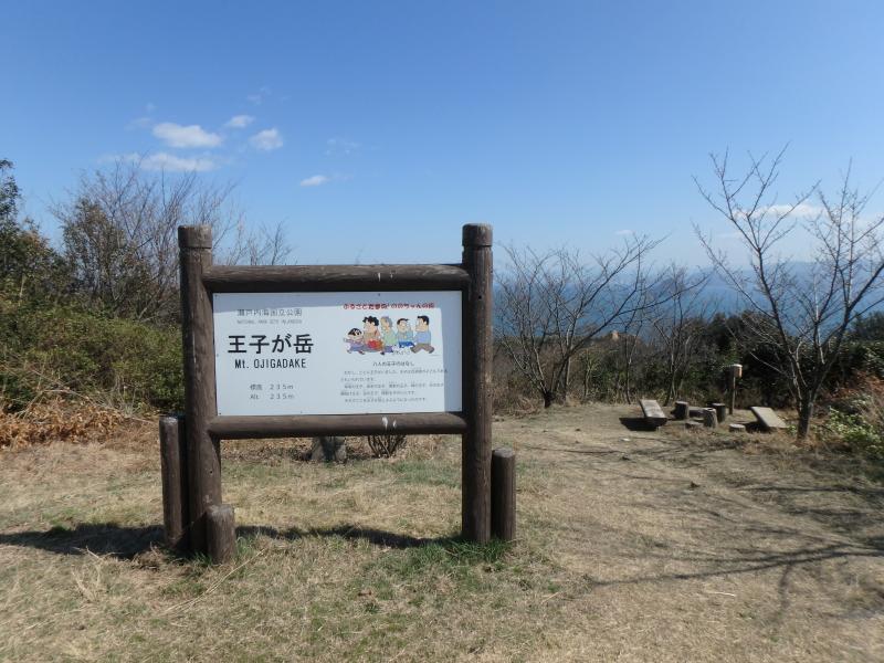 - 渋川港駐車場==(60分)==王子が岳山頂==(20分)==