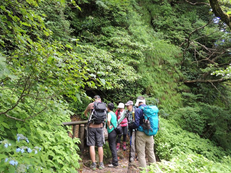 - 5月から3か月連続の山行ですが梅雨の束の間の晴天で稜線は水を含んでおり滑れやすくなっていました。