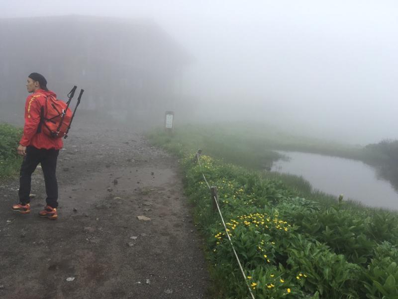 今まで好天を外したことのなかった梅雨時期の白山、今回はガスで真っ白。