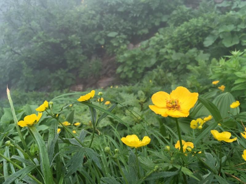- 雨はほとんど降りませんでしたが濃いガスのためすべてが濡れていて、特に岩は滑りやすかったです。