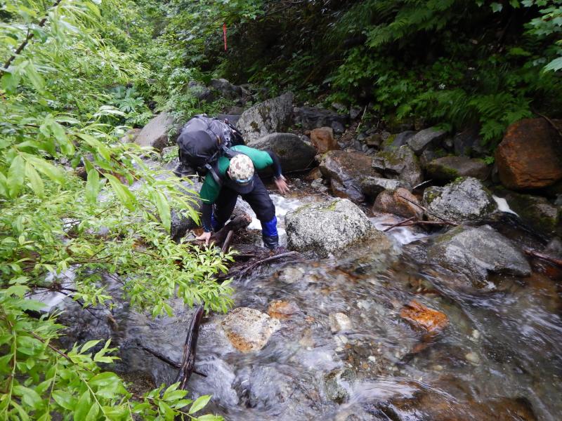 前半は渡渉を繰り返しながら沢を登っていきます。覚えてるだけで約8回くらいあったと思います。靴が半分ほど沈むところもありますし、水中の石はとても滑るので注意!沢を離れると本格的な登り、急登です。トッタの泉まで登ればあと一息。