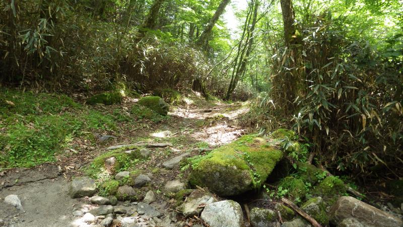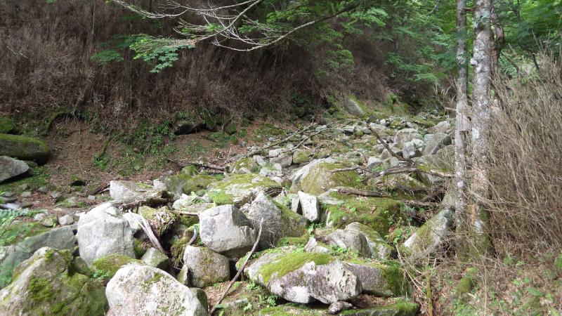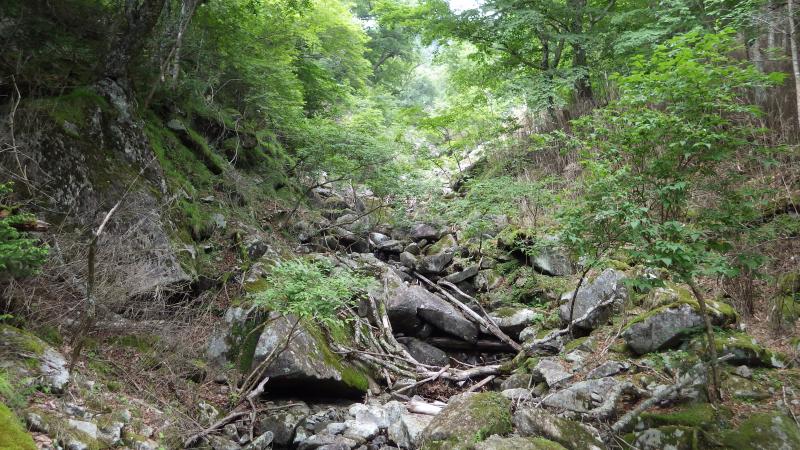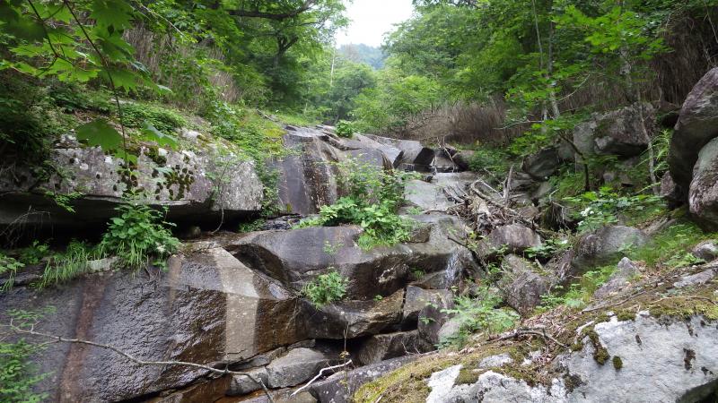 登山道から上流もナメや滝があるようで、稜線まで上がることもできます。