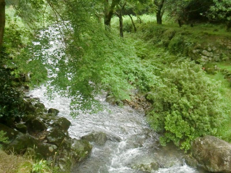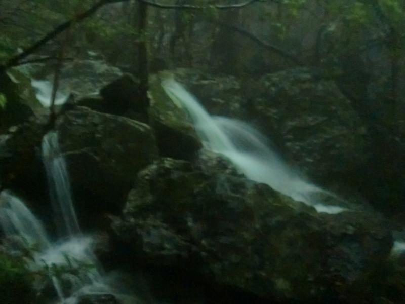 - 前日までの雨の影響もあり、森の中の沢は増水していました。