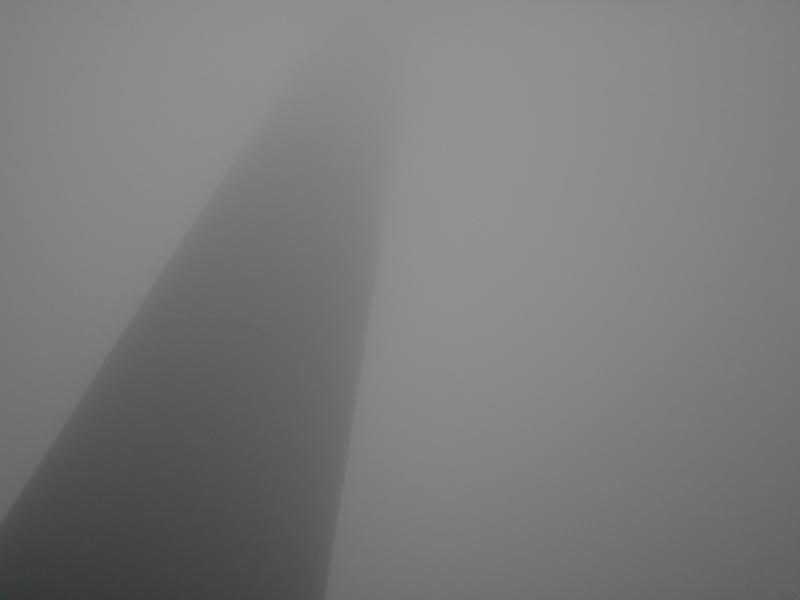 ついでに風力発電の風車も見に行ったのですが、霧のあまりの深さに羽根が見えない。