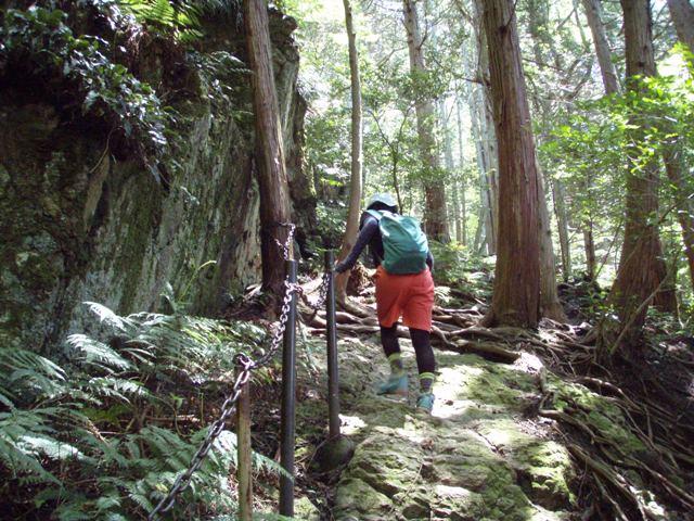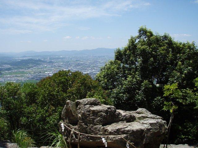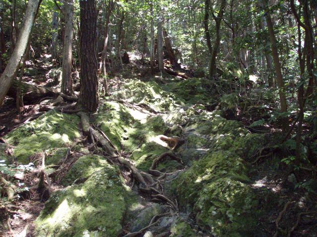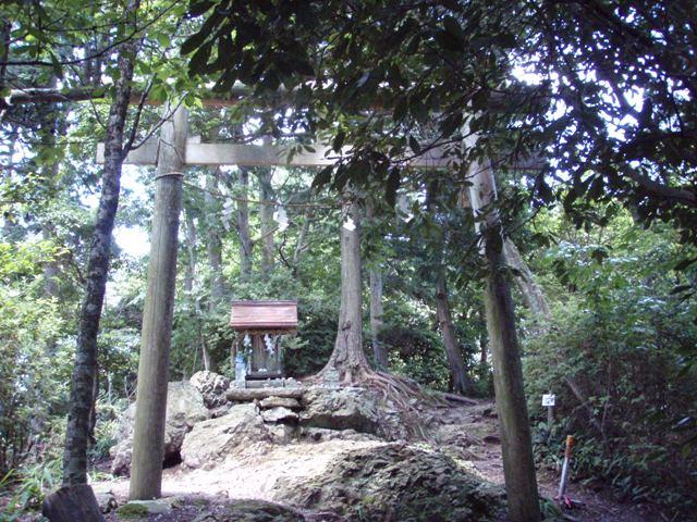 十字路の分岐から少しずつ岩っぽい場所が増え始め、苔が谷ら辺まで来ると、展望地点がありました。そのまま登り続けると鳥居がありそのすぐ上が三上山の山頂でした。三角点なし、展望は鳥居の下に絶景ポイントあり。気温30度で暑かったですが、山頂部は木陰でベンチもあり。。