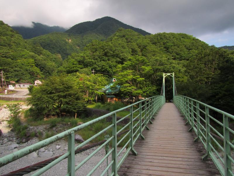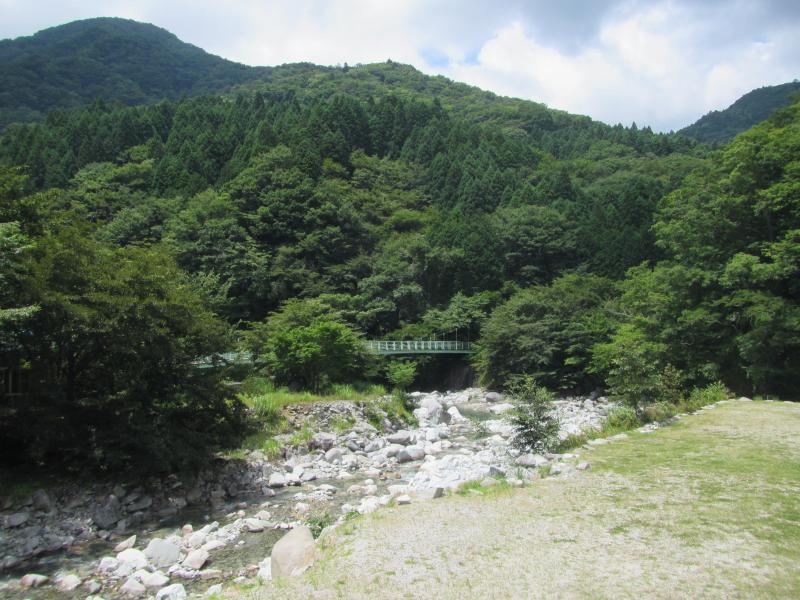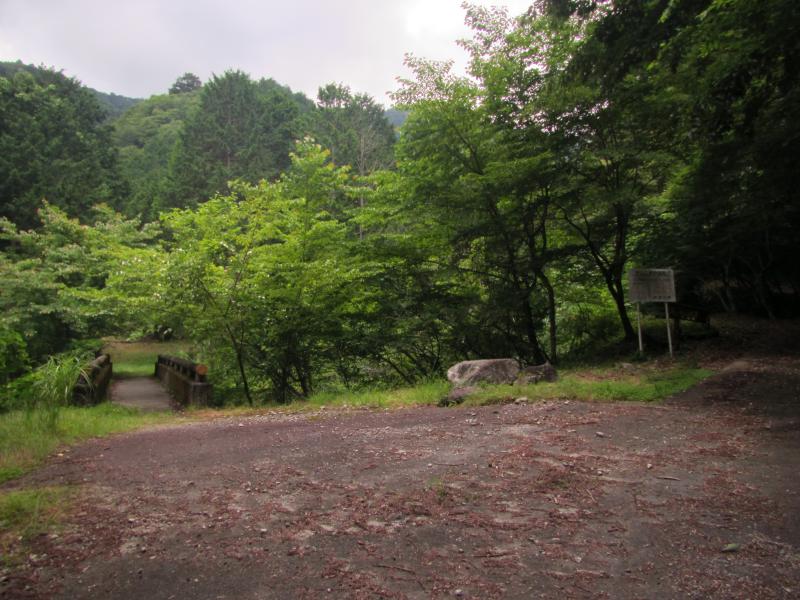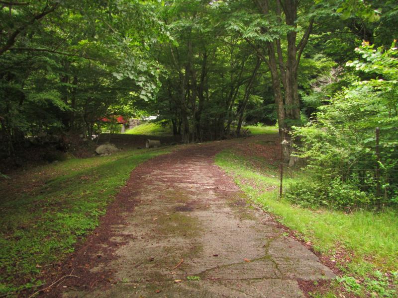 橋を渡ると白石沢キャンプ場跡地。左手に下り、その先の道をさらに進みます。