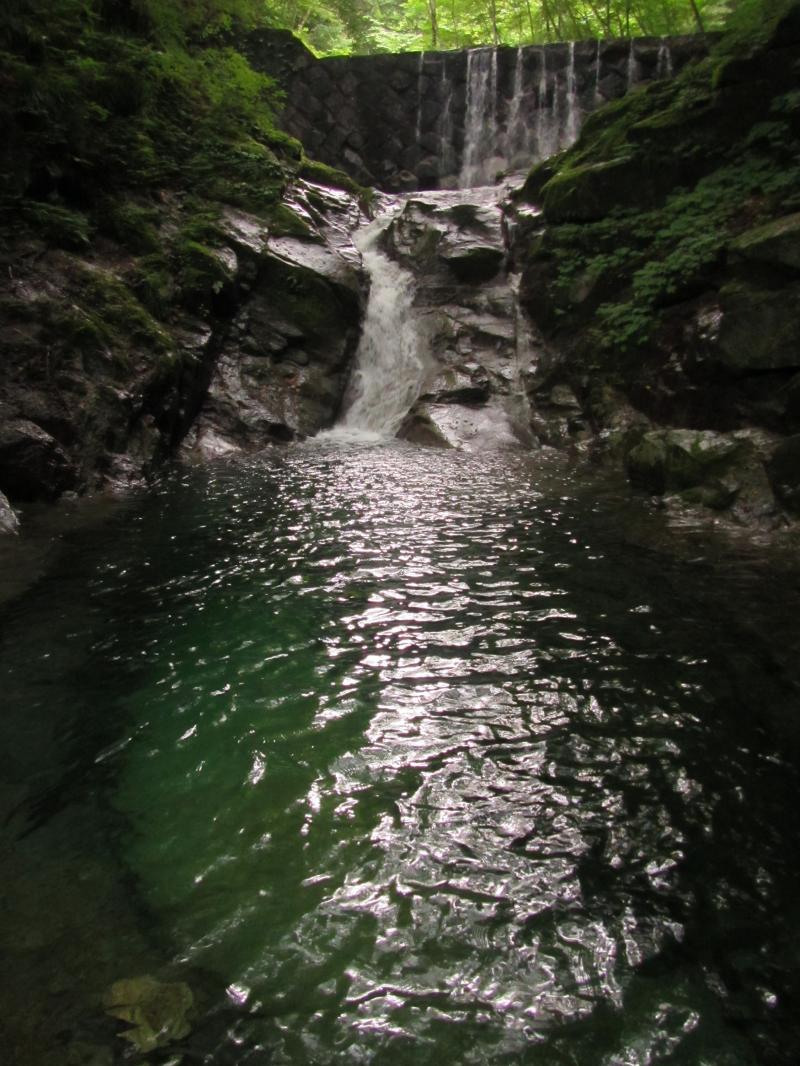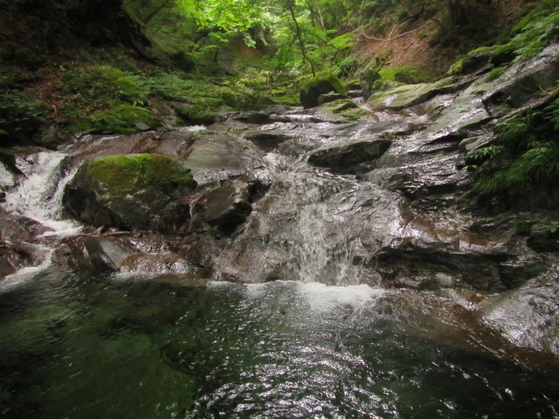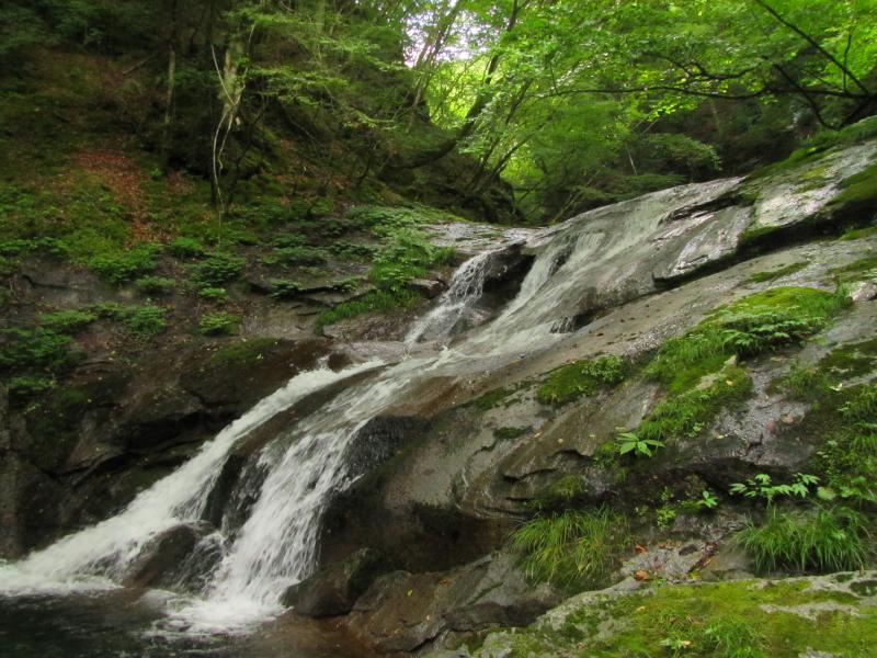 大滝を越えると、大きく深い釜をもった連瀑帯が石積み堰堤まで続き、この辺りが一番心癒されるところと言われます。