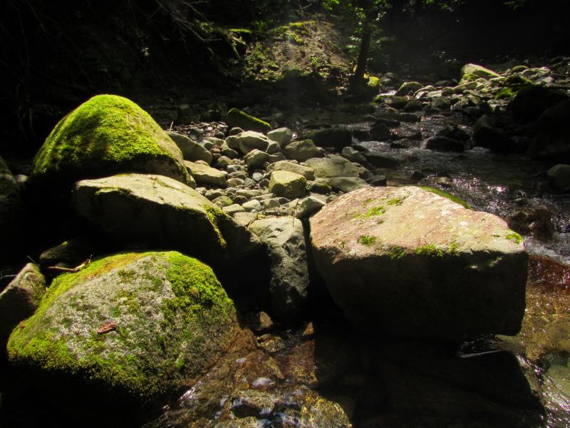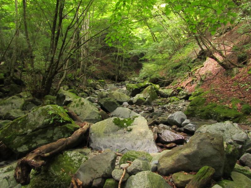 石積み堰堤を越えると、後はやや冗長な苔むしたゴーロ歩きとなります。