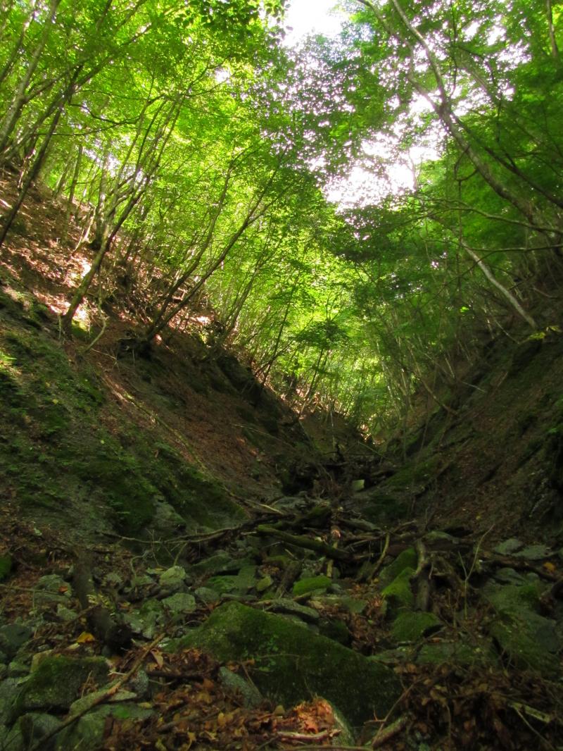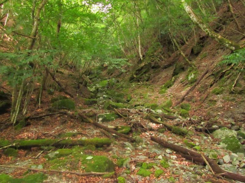 右にカーブしながら忠実に沢型を辿ると、登山道のある尾根が見えてきます。