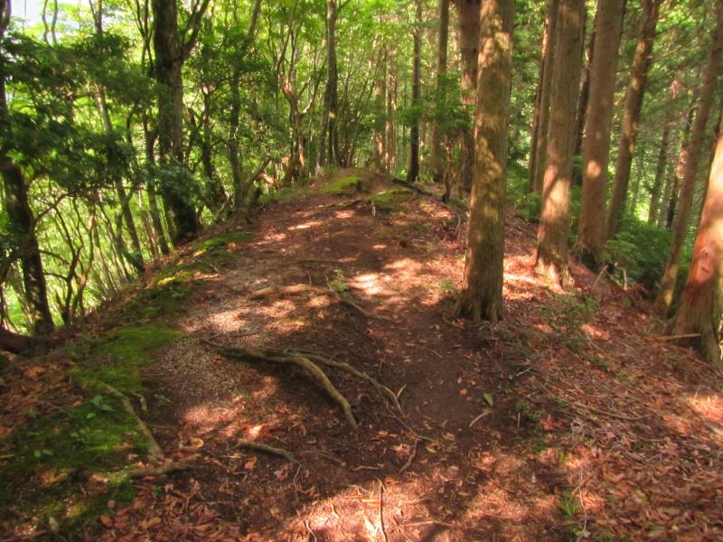 適当なところで、立ち木のモンキークライムで強引に斜面を攀じ登ると、登山道はすぐそこです。