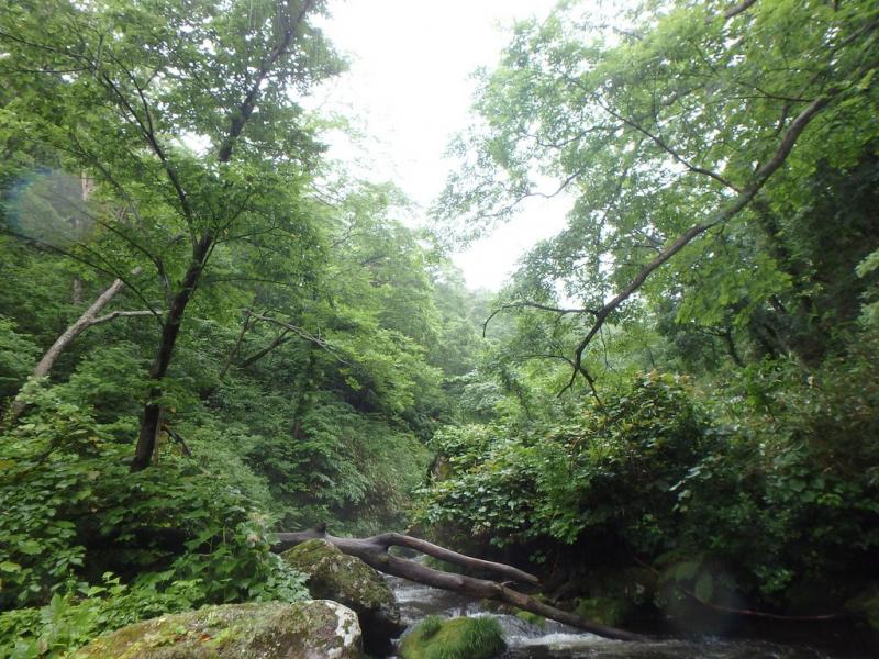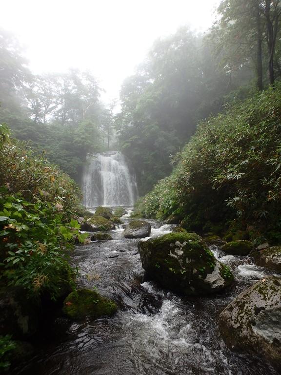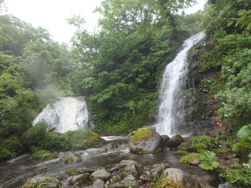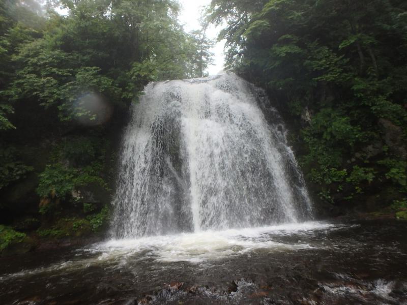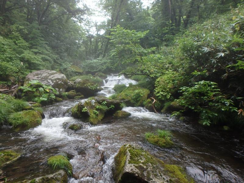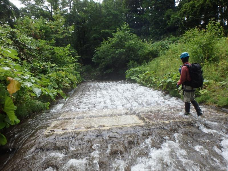 当初計画していた美国川本流は前々日から降り続く雨で濁流になっており、断念。そこで流域の小さな伊佐内川へ転進。案の定、流域の小さな伊佐内川は増水程度はなんとか遡行できる程度に収まっていました。それでも増水した沢のゴーロ歩きは通常の倍位の時間が掛かり、430m二股までで引き返しました。
