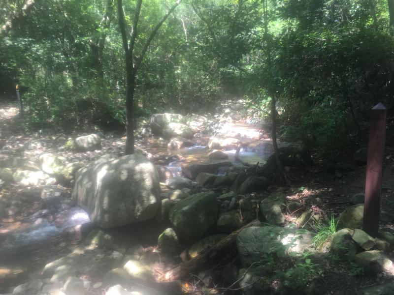 山麓から静かな谷道を歩き、非常に暑い日でしたが山に入ると少し涼しく感じました。