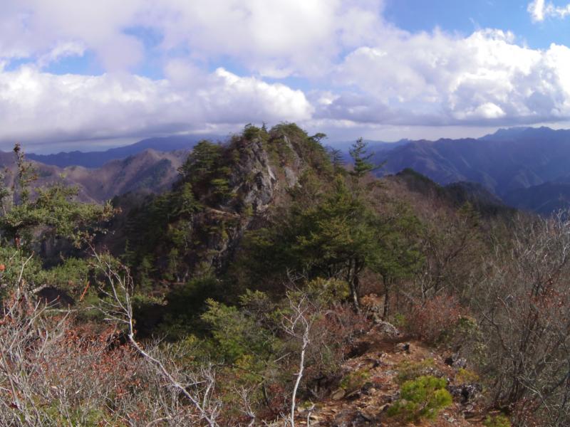ツームシ山~孫岳は、少しのヤブこぎを何度か強いられます。