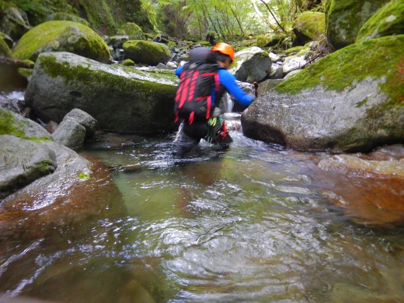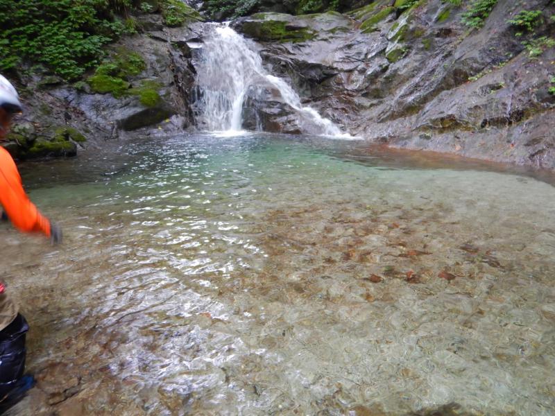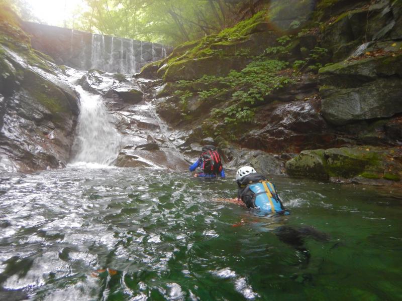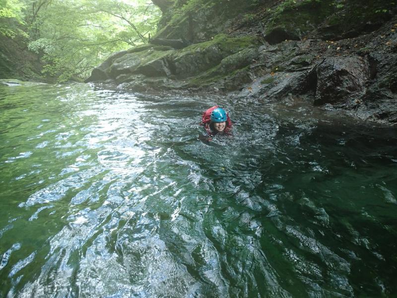 一年ぶりの沢登りに足が思うように動かなかったですが、釜の中を泳いだりするところもたくさんあり、