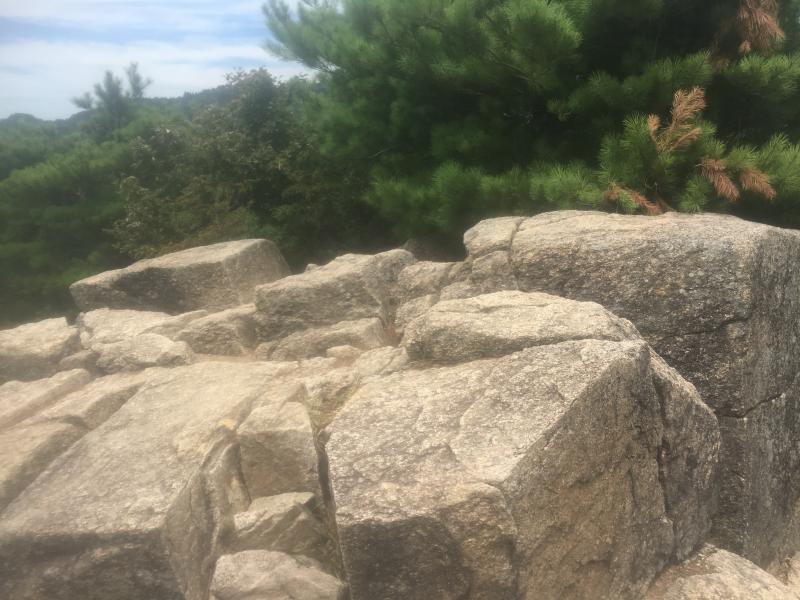 山頂付近は岩場があり、数人休める広さがあります。眺めもよく風が抜け休憩にはいい場所です。