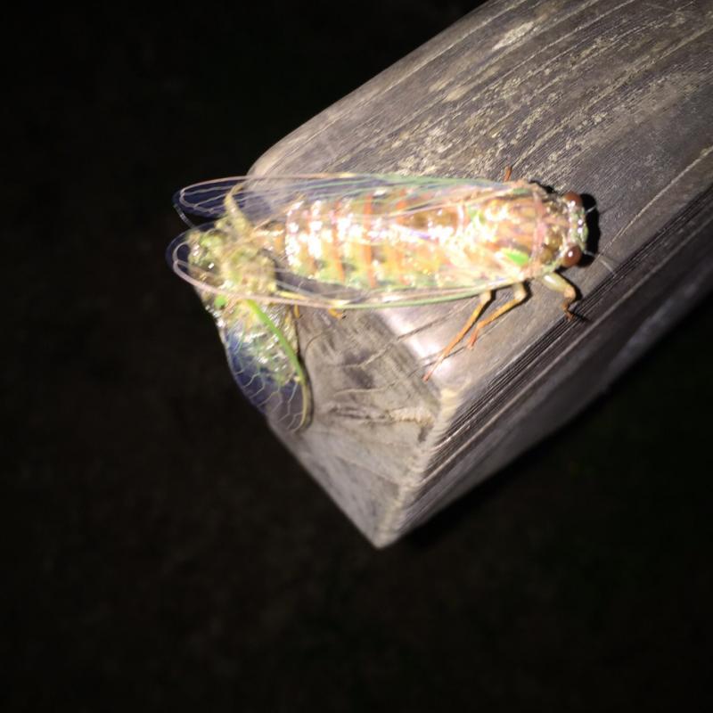 羽化したばかりの春蝉が、羽を乾かしていた。