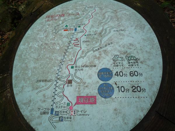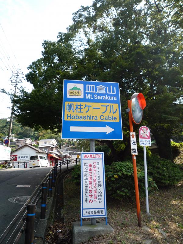 - 皿倉表登山口 (50分) 皿倉の泉 (30分) 皿倉山ビジターセンター (5分) 帆柱ケーブル山上駅 (5分) 皿倉山 (10分) 国見岩 (50分)帆柱稲荷神社 (10分) 稲荷皿倉登山口