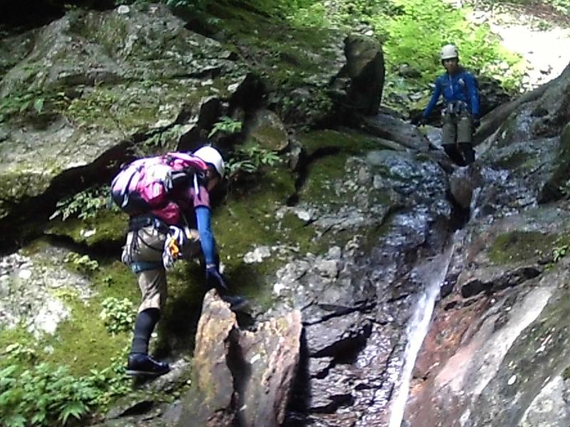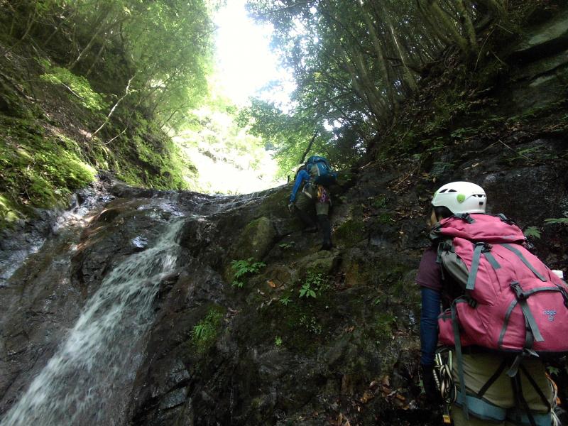 念のため2回程ロープを出しましたが、難しい滝もなく、気持ちよく登れます。