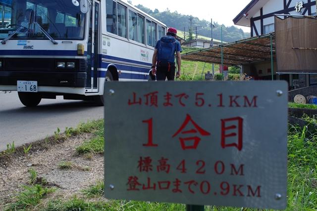 - 登山口(60分)3合目(25分)5合目(70分)山頂(50分)5合目(60分)登山口