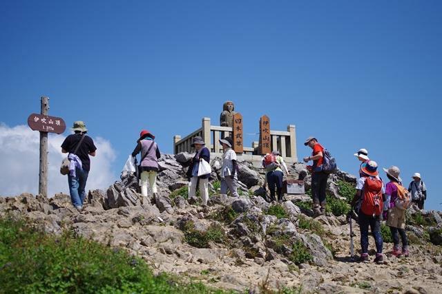 登りは風とガスが出ていたので、暑いものの適度に涼しかったです。