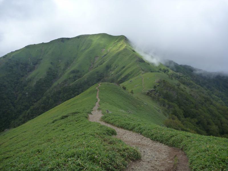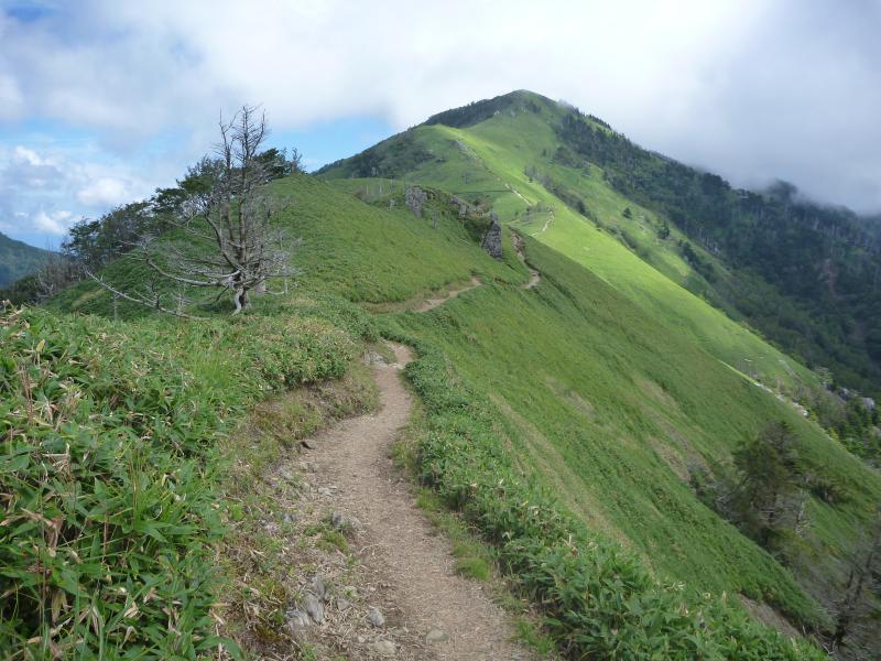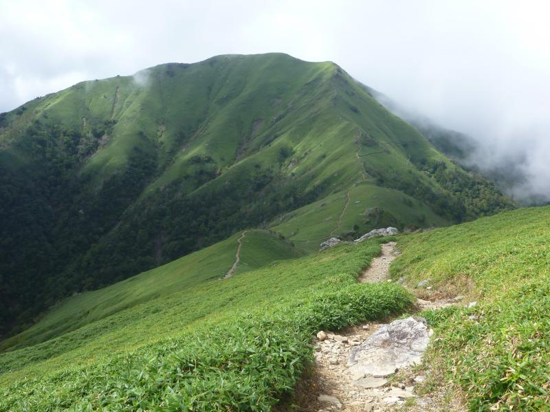 近くの奥祖谷二重かずら橋キャンプ場に前泊しての早朝出発となりました。午前中は天気も曇り空で剣山山頂で暫く休憩をしている間に晴れ間が見え始め、次郎笈へと続く長い稜線が素晴らしく眺める事が出来ました。
