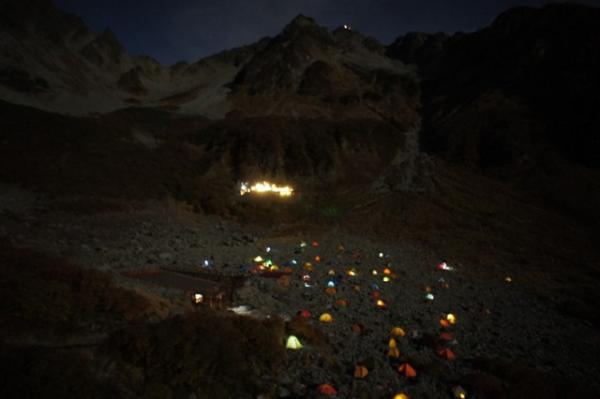 3日目 涸沢(1:00)屏風のコル(4:30)上高地