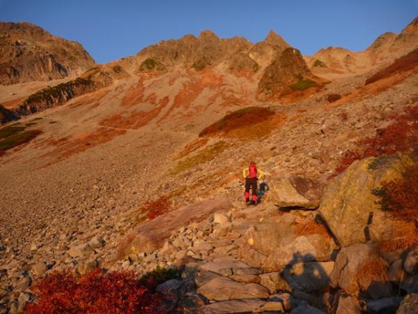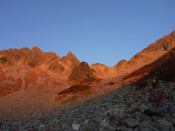 私のイチ押しはモルゲンロートの瞬間を涸沢から少し奥穂方面に登ったところから