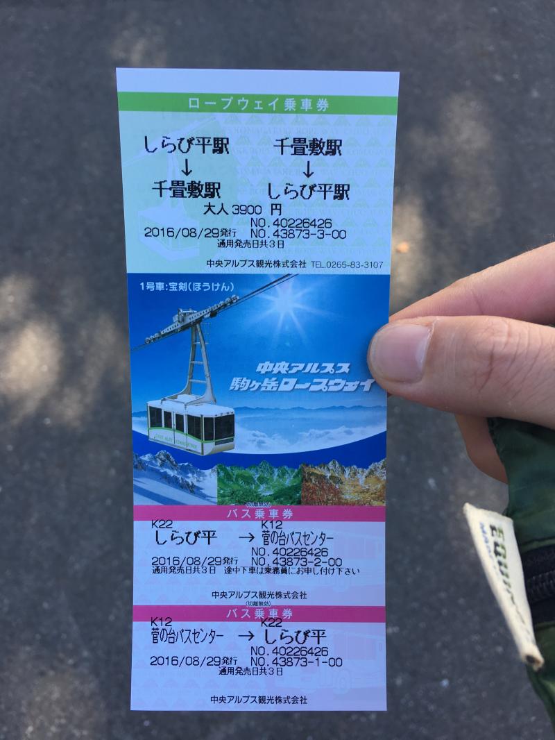 - ロープウェイ千畳敷駅(40)乗越浄土(15)中岳(20)木曽駒ケ岳(中岳巻道15)宝剣山荘(20)宝剣岳(40)極楽平(25)ロープウェイ千畳敷駅