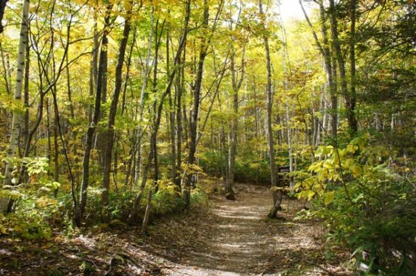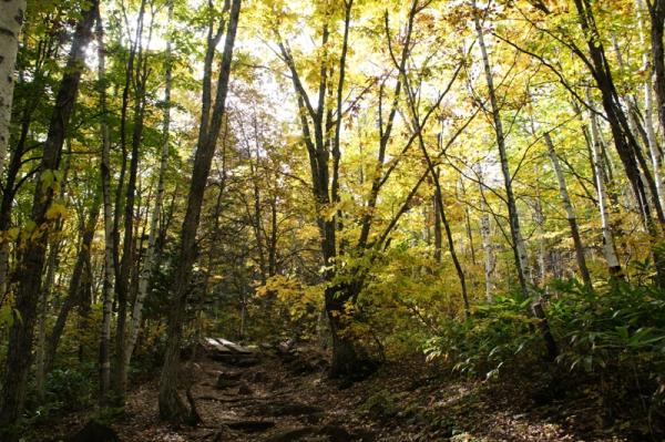 木漏れ日の中、落ち葉でふかふかの森の道を歩くのは身も心も洗われます。