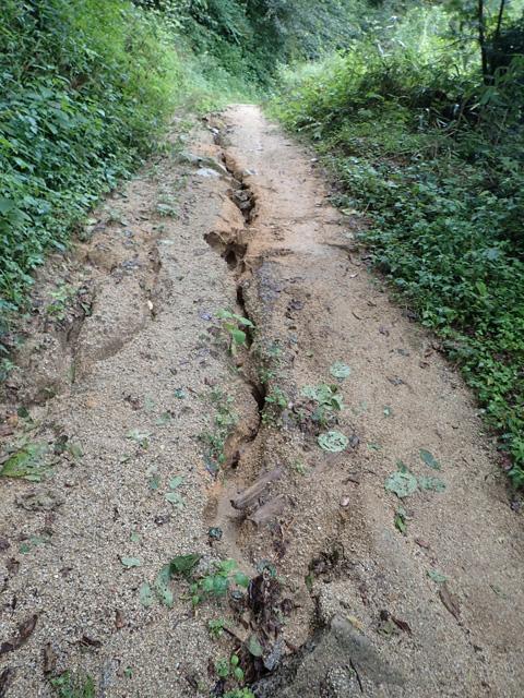 登山道は少し水分が多く含まれているせいか、ぬかるんでいたり、陥没していたりしていました。