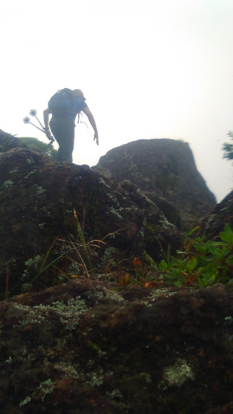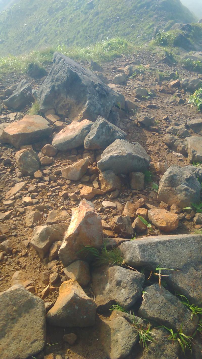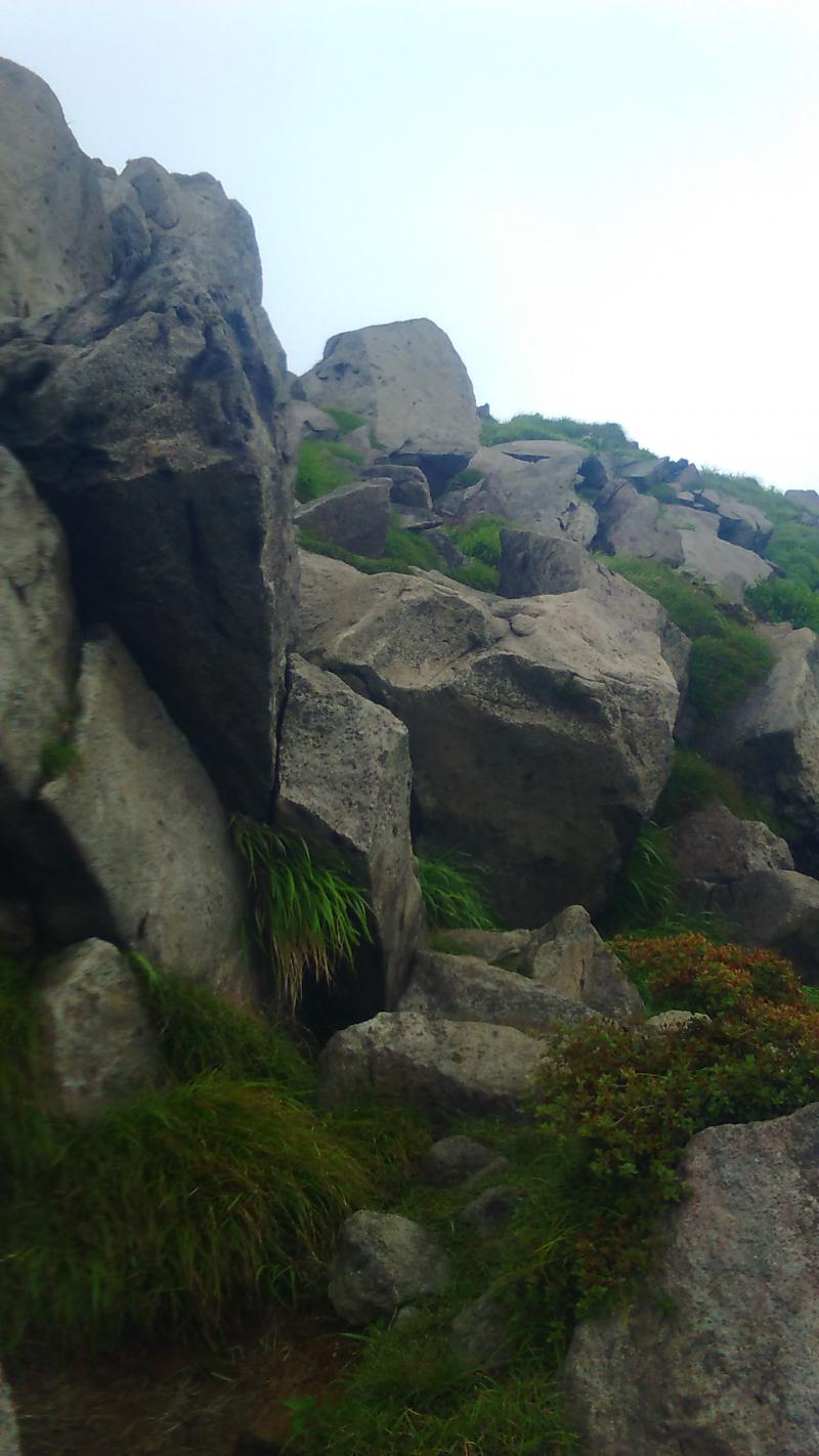 スパッツか、いっそのこと岩場の登りまでレインパンツを履いたほうが良いかもしれません。