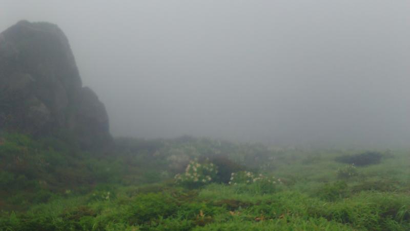 久住山頂でしとしと雨が降り出しました。