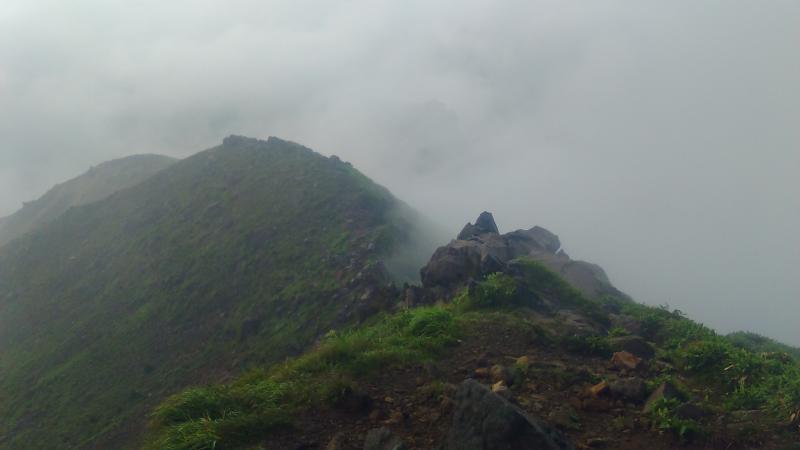 星生山は夏山らしい稜線が魅力です。登りは様々巨岩が迎えてくれます。山頂からの展望はより近くで三俣山や硫黄山を拝せます。