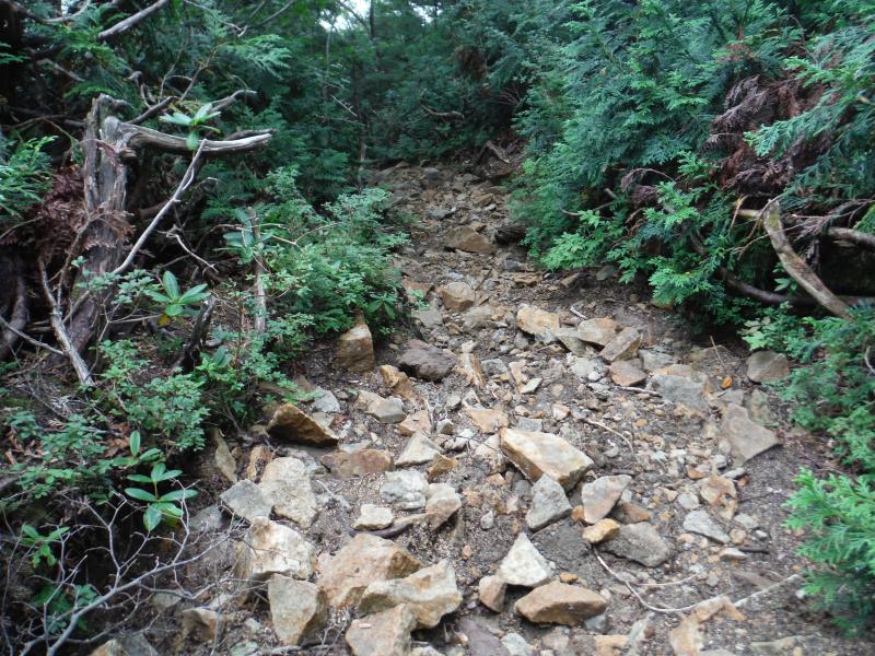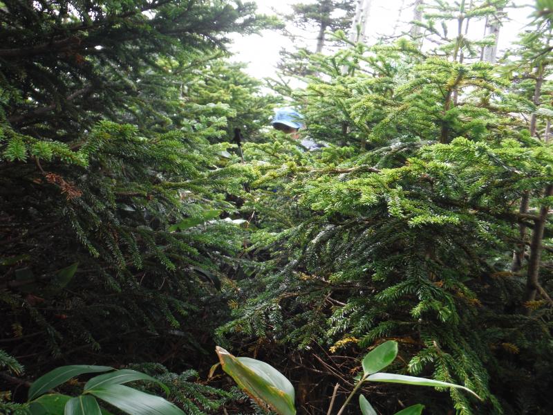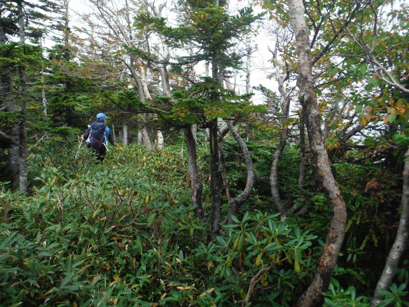 ・白桧岳~錫ヶ岳 踏み跡はあるが一部分かりづらい。背丈くらいの石楠花やコメツガを掻き分けることも。ただし、その場合、大体 足元に踏み跡はある。ガスが濃いとき進路に注意。