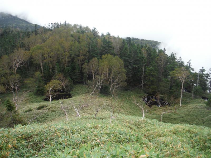 五色沼小屋へと降りる道を分けて踏み跡を辿って行く。ここから先がとても魅力的なんです。