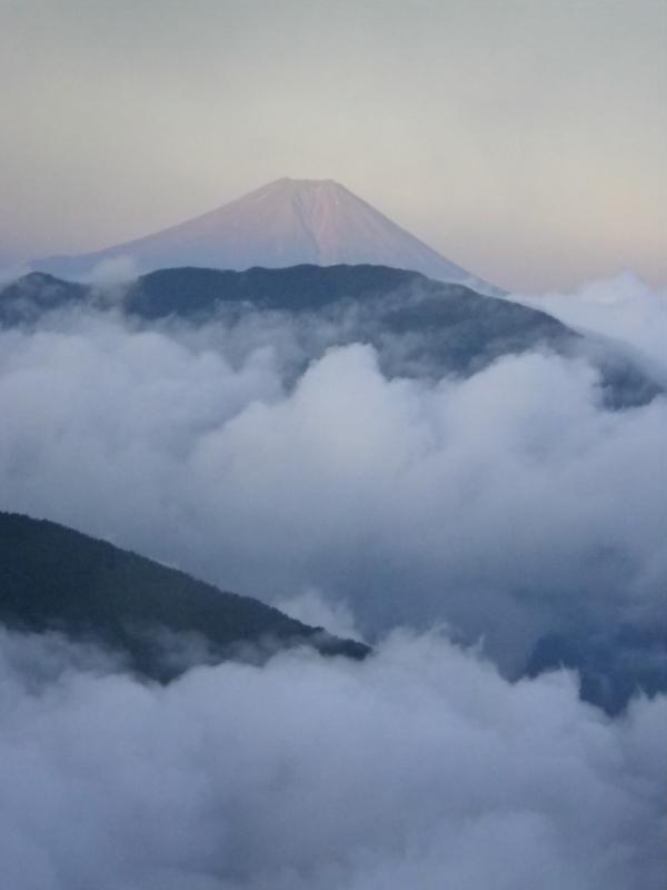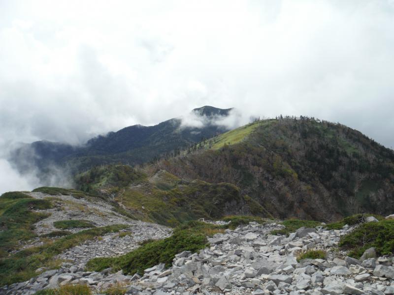錫ヶ岳へと延びる白錫尾根が一望でき 疲れがやわらぐ。ここから錫ヶ岳を目指して南下していきます。