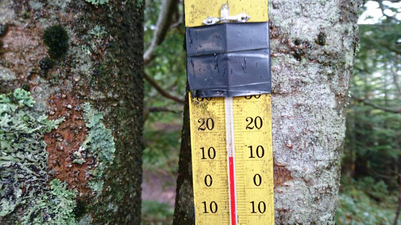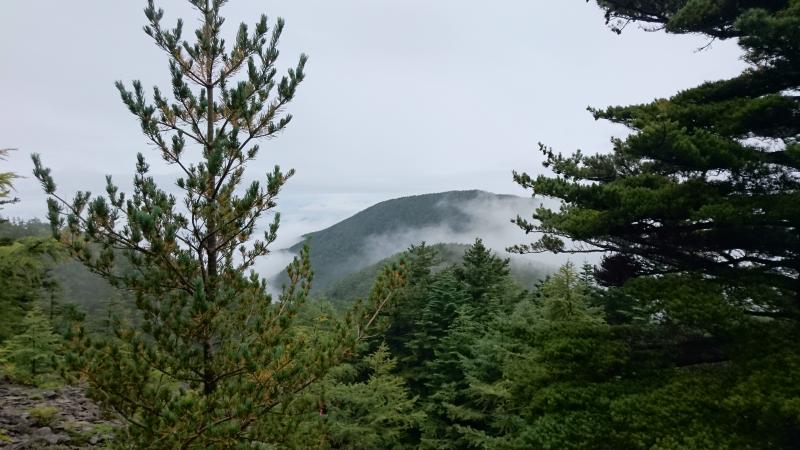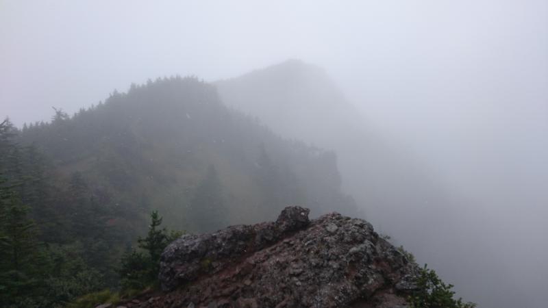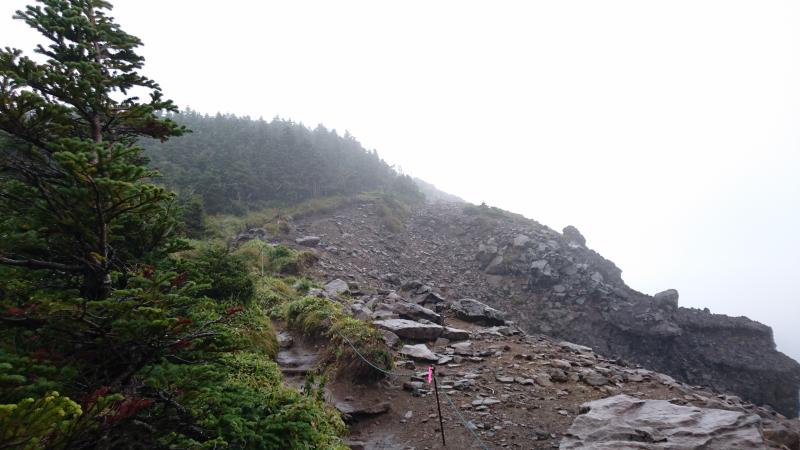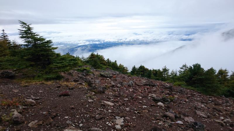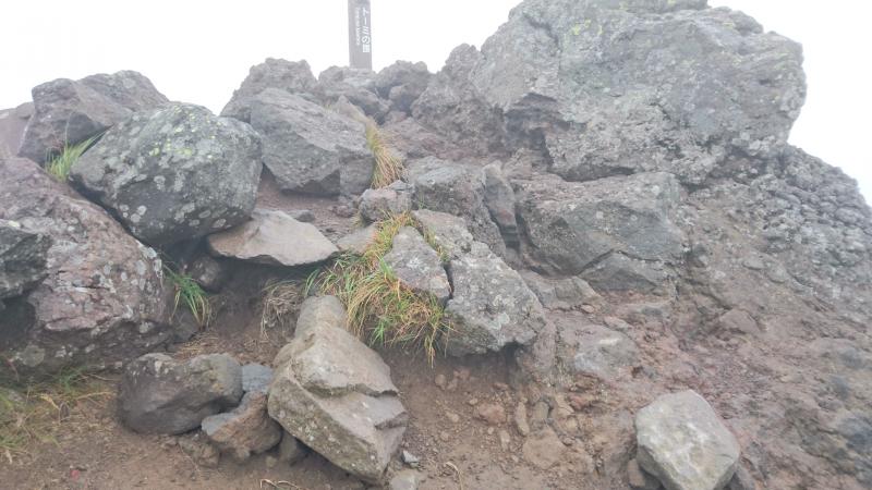 - 雨が降っており足元は滑りやすかった。富士山のような赤茶けた岩がゴロゴロしている。